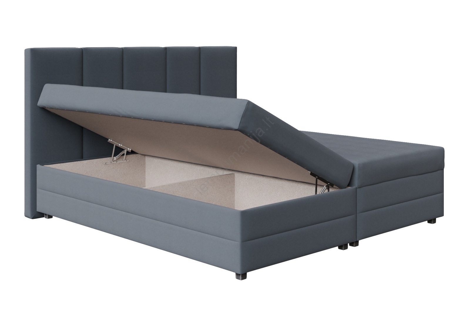 Apmušta lova ISABEL 180x200 su spyruokliniu čiužiniu ir talpia daiktų laikymo vieta, pilka