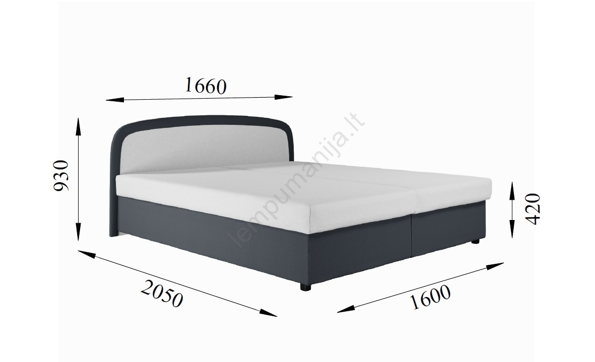 • Apmušta dvigulė lova su spyruokliniais čiužiniais pasižymi išbaigtu, elegantišku galvūgaliu.