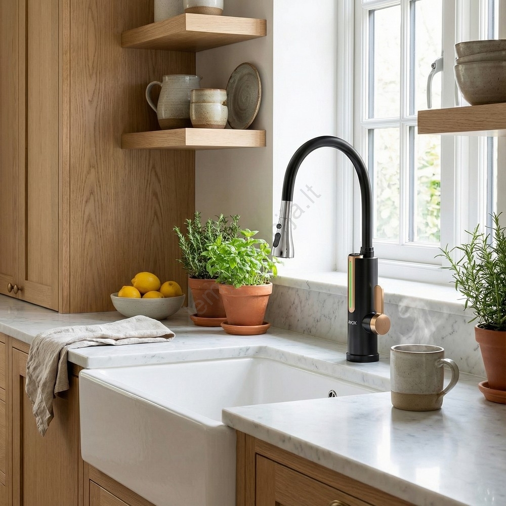• Su jais galite mėgautis karštu vandeniu bet kada, kai jo reikia, nebelaukdami, kol vanduo sušils.