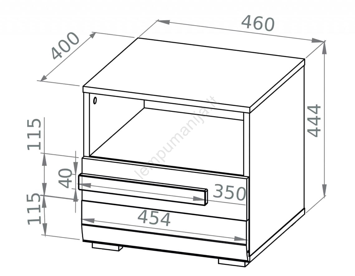 • Pagaminta iš laminuotos medžio drožlių plokštės.
