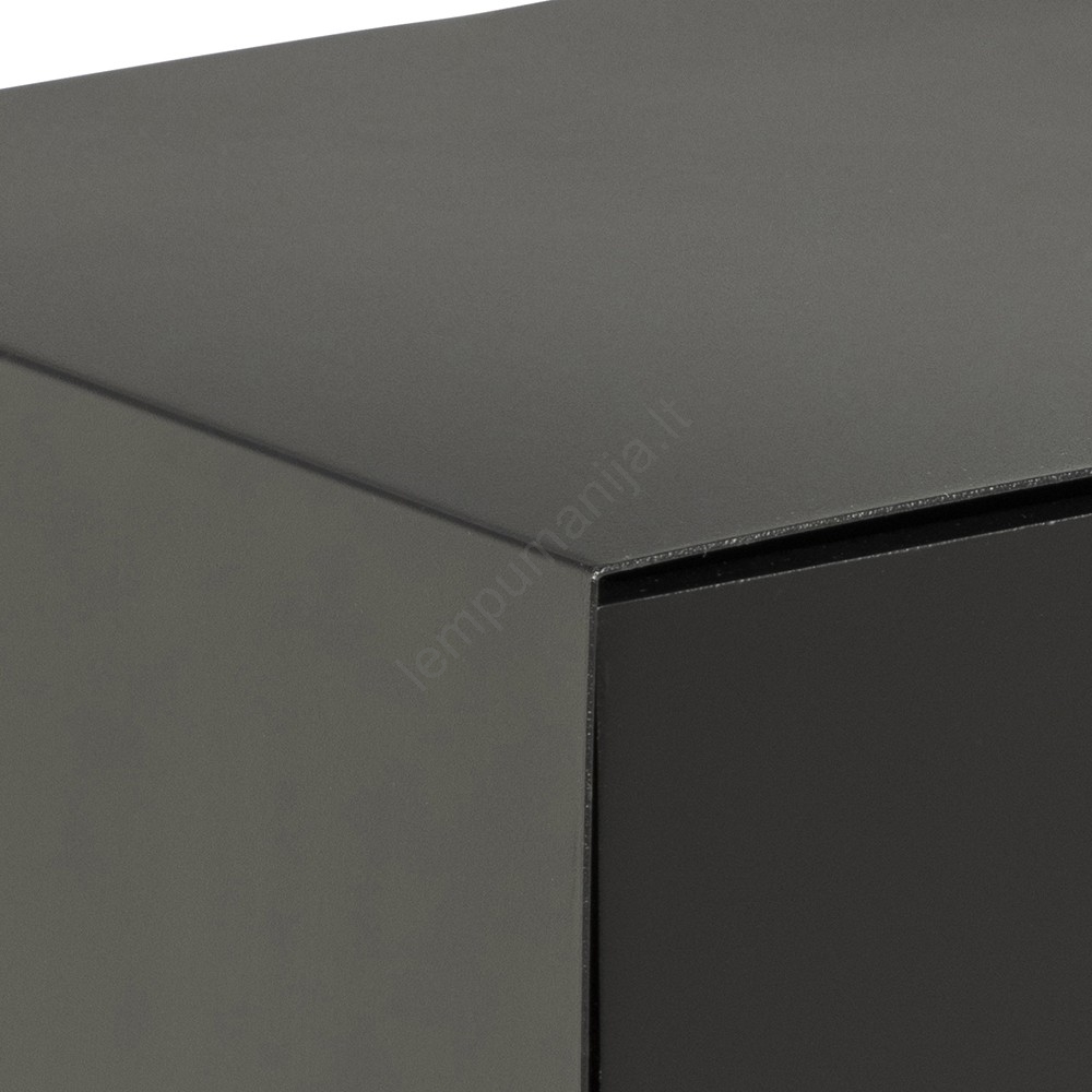 • Viršutinė plokštė ir rėmas – matinės juodos spalvos, grubiai milteliniu būdu padengtas plienas, stalčius juodos spalvos su atvira lentynėle ir sienine tvirtinimo galimybe.