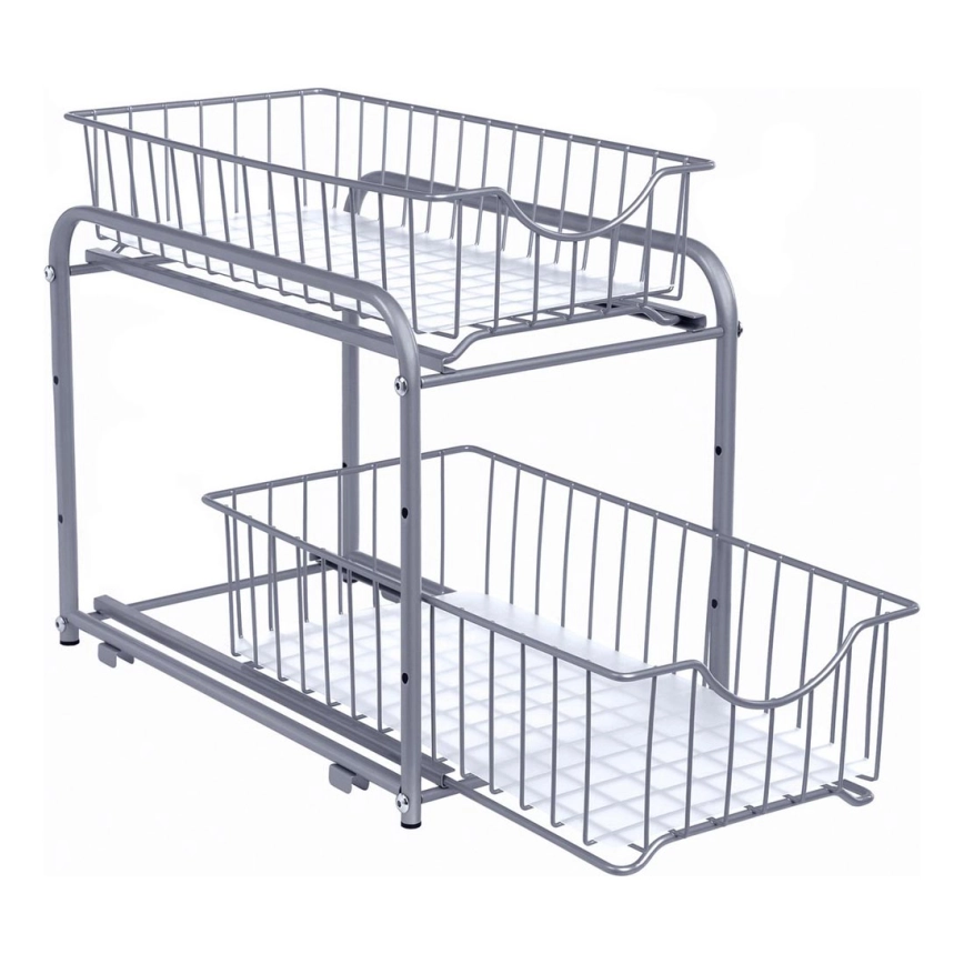 • Naudokite šį organizatorių daiktams sutvarkyti, praktiškai įrengti vietą po kriaukle arba kaip vonios lentynėlę muilui ir tualeto reikmenims.