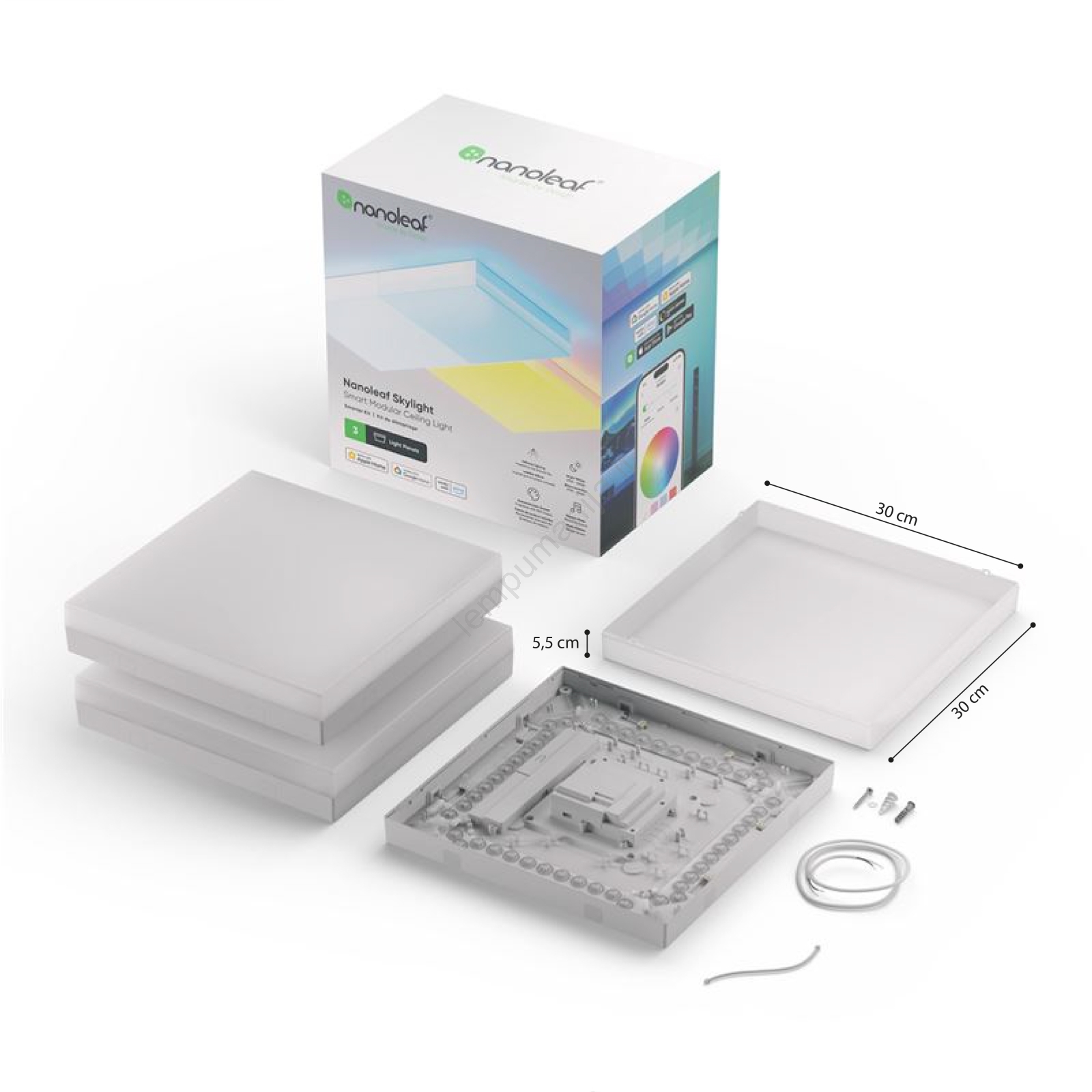 • Nanoleaf Skylight yra modulinis, išmanus lubų šviestuvas.