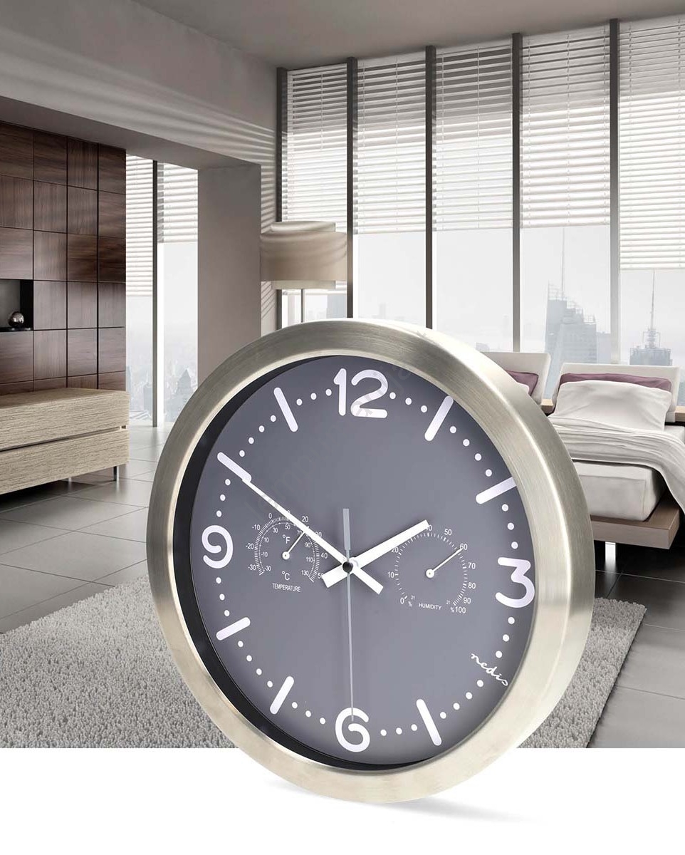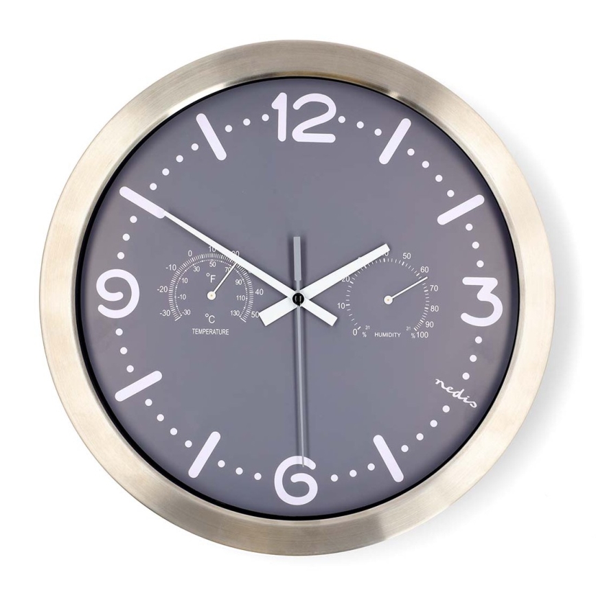 Sieninis laikrodis su termometru ir higrometru, skersmuo 30,5 cm, 1xAA, nerūdijančio plieno/pilka