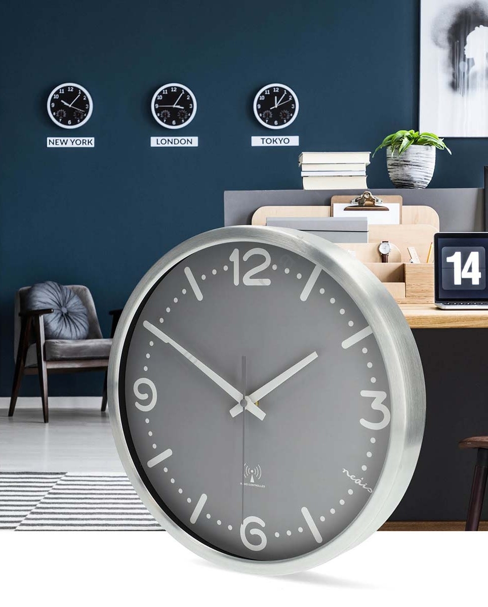 Sieninis laikrodis, skersmuo 30,5 cm, 1x AA, matinio chromo ir pilkos spalvos