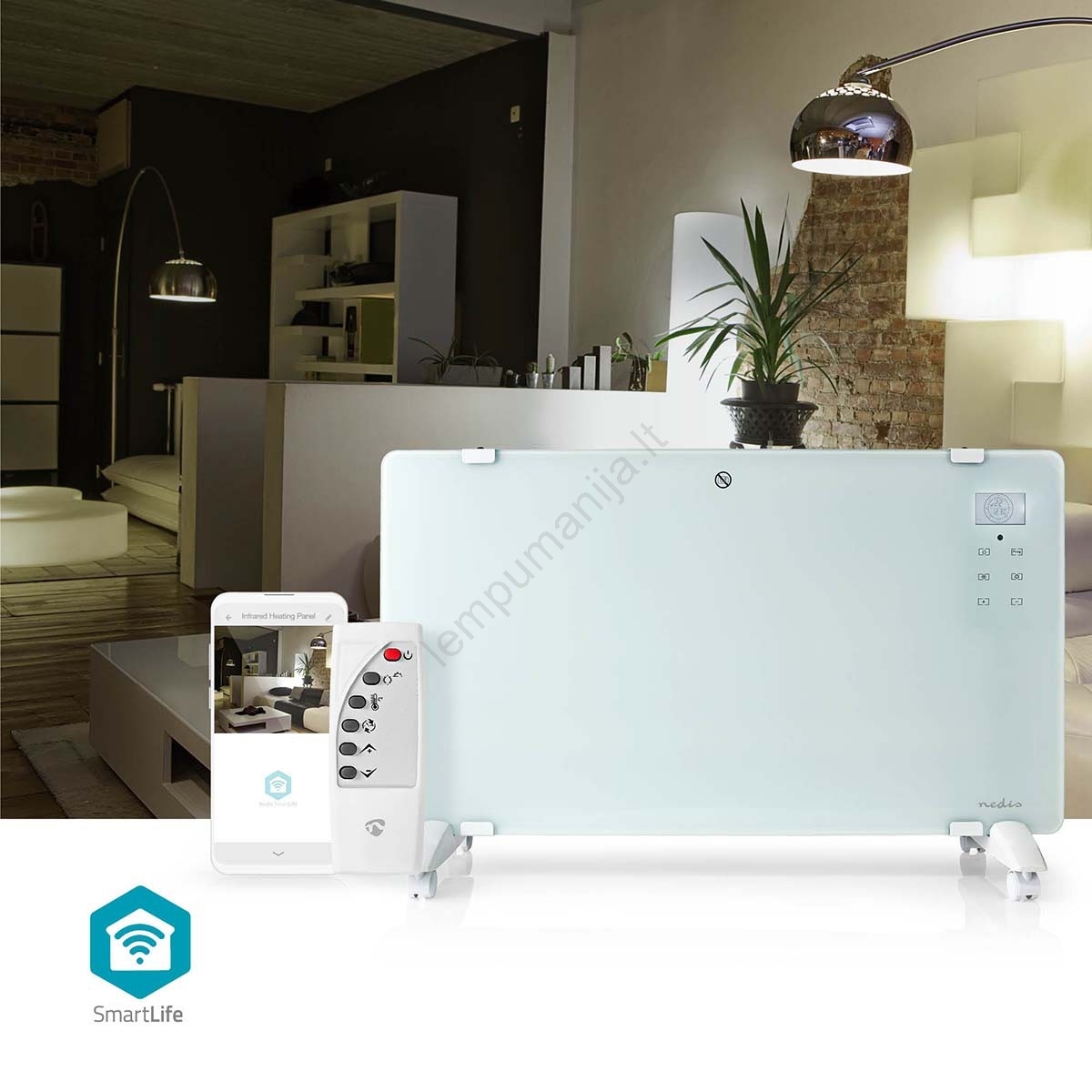 Nedis WIFIHTPL20FWT - Elektrinis tiesioginis šildytuvas/konvektorius 2000W/230V Wi-Fi IP24 termostat