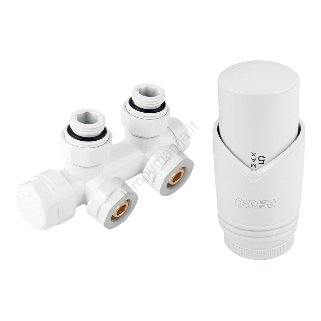 Novaservis - kampinis baltas komplektas radiatoriams su centriniu prijungimu | Lempumanija