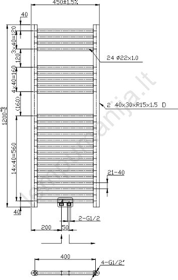 Novaservis - Vonios kambario kopėčių tipo rankšluosčių radiatorius 490W/230V 120x45 cm juodas, tiesu