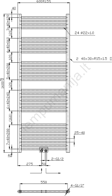 Novaservis - vonios rankšluosčių džiovintuvas (kopėčių tipo) 544W/230V 160x60 cm blizgus chromas tie