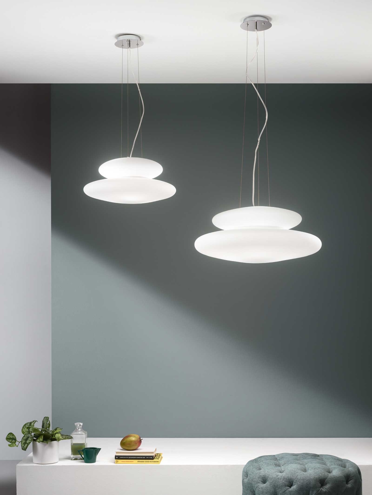 Ondaluce - Pakabinama liustra PAGODA ant laido, 3xE27/15W/230V + 2xE27/15W, skersmuo 50 cm, balta