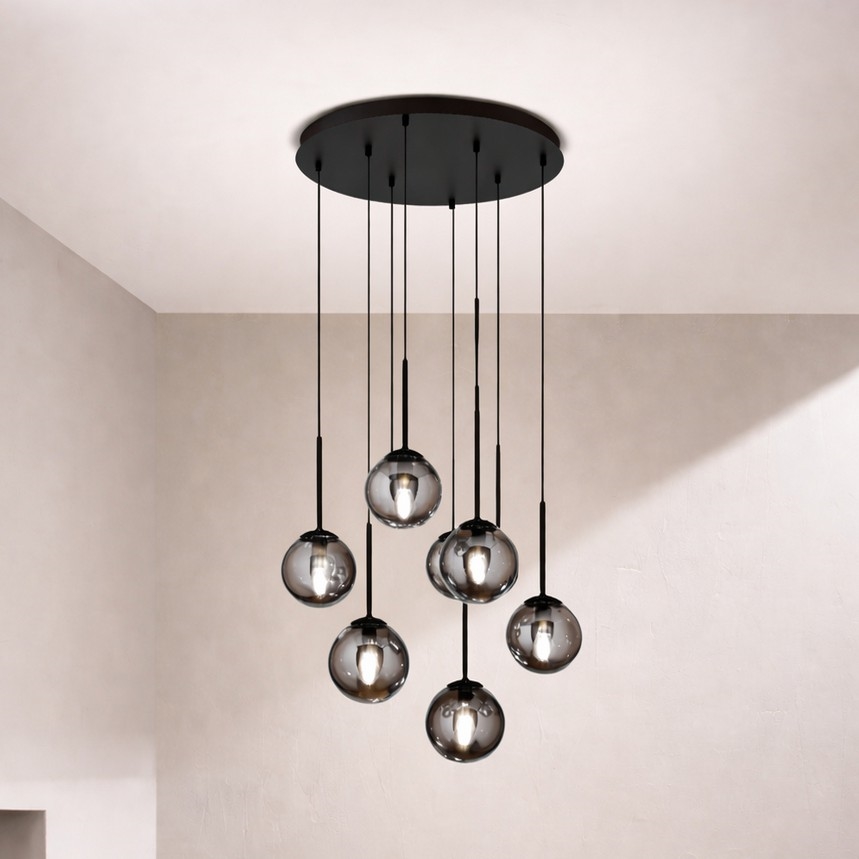 • Ondaluce - Pakabinamas šviestuvas ant laido JEWEL 8xE14/10W/230V Ø 70 cm dūminė juoda