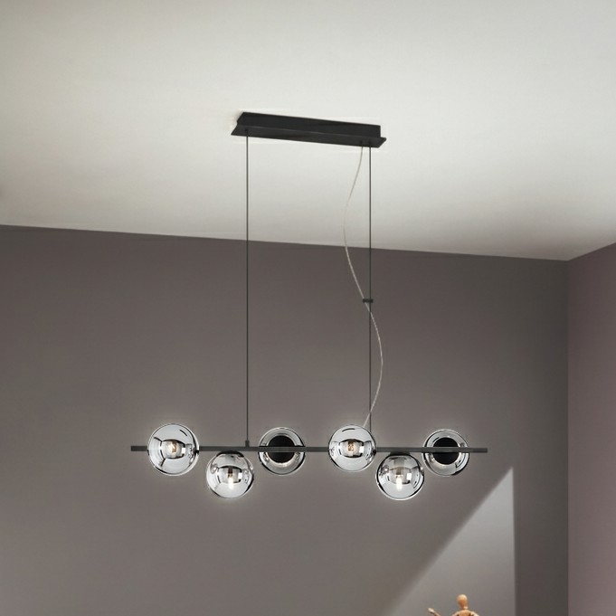• Ondaluce - Pakabinamas šviestuvas ant laido MONILE 6xE14/10W/230V dūminė juoda