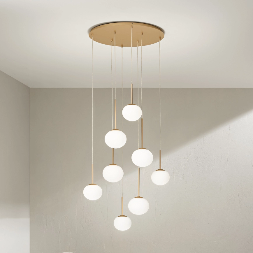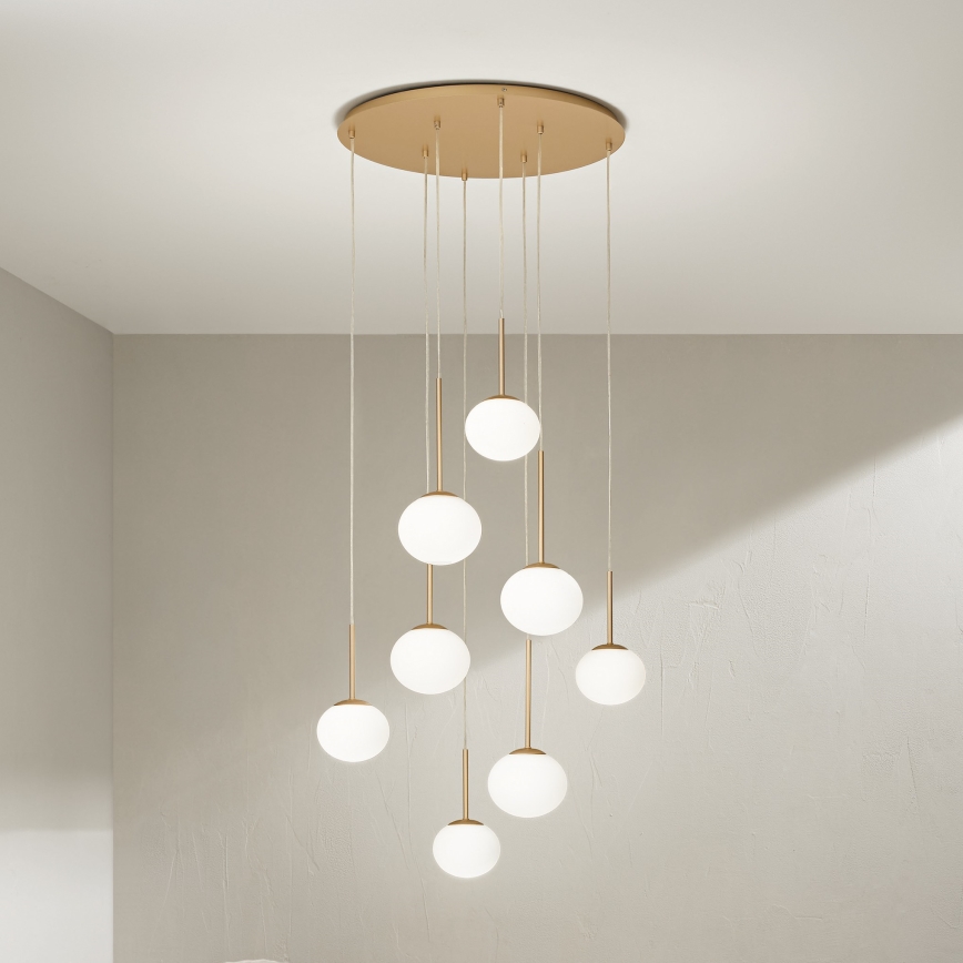 • Ondaluce - Pakabinamas šviestuvas ant troselio JEWEL 8xE14/10W/230V Ø 70 cm auksinis/baltas