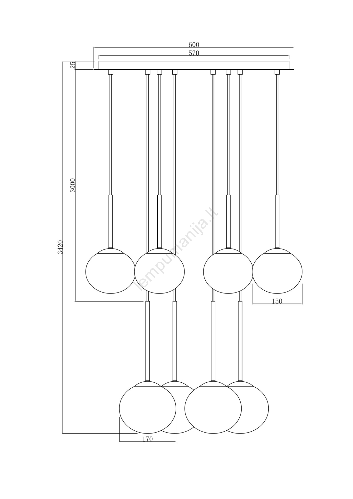 • Ondaluce - Pakabinamas šviestuvas ant laido JEWEL 8xE14/10W/230V Ø 70 cm dūminė juoda