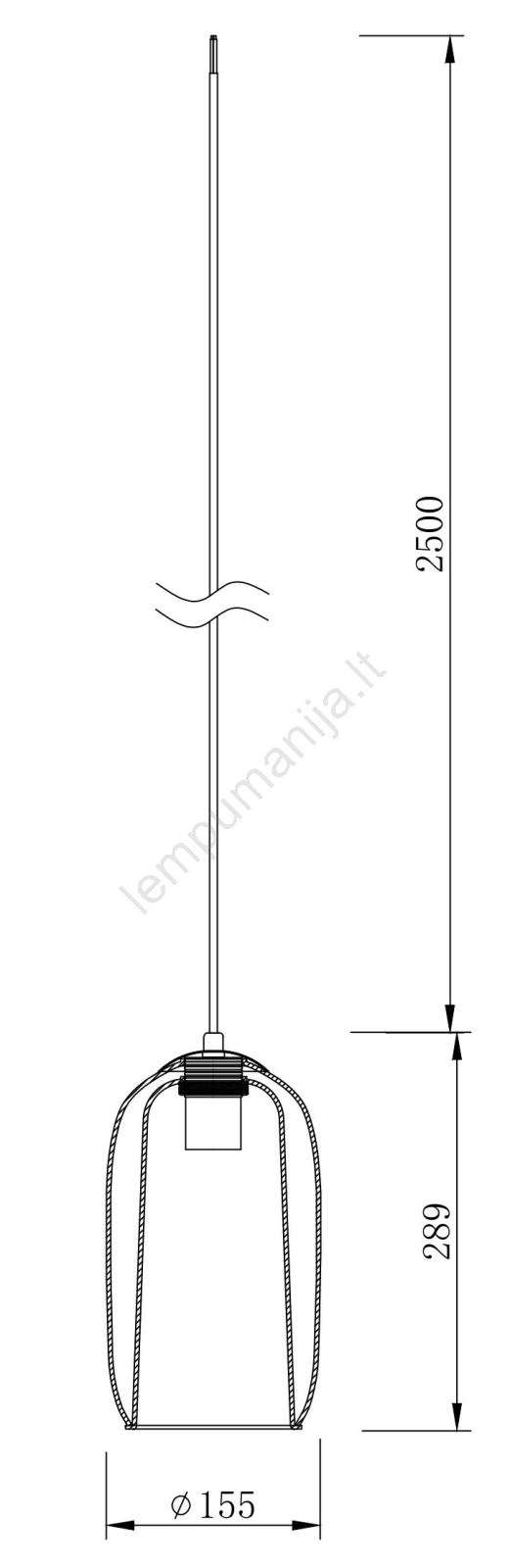 Ondaluce - Pakabinamas šviestuvas su laidu BONNIE 1xE27/15W/230V Ø 15 cm dūminė juoda