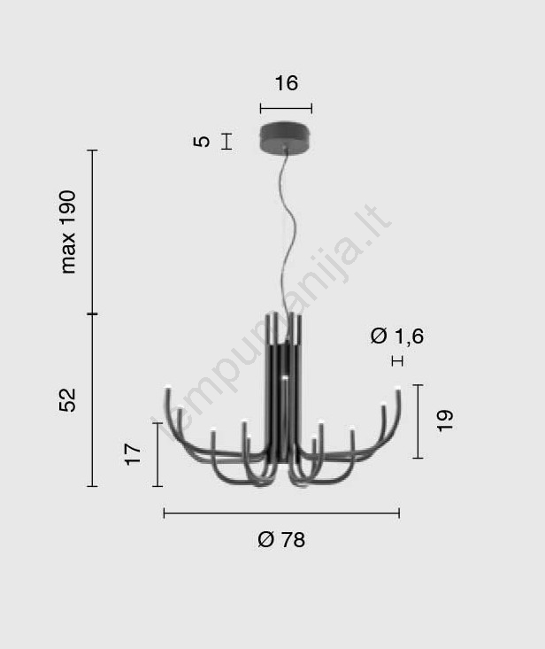 • Ondaluce - Dimeriuojama pakabinama liustra ant laido NOUVEAU LED/35W/230V, skersmuo 78 cm, juoda