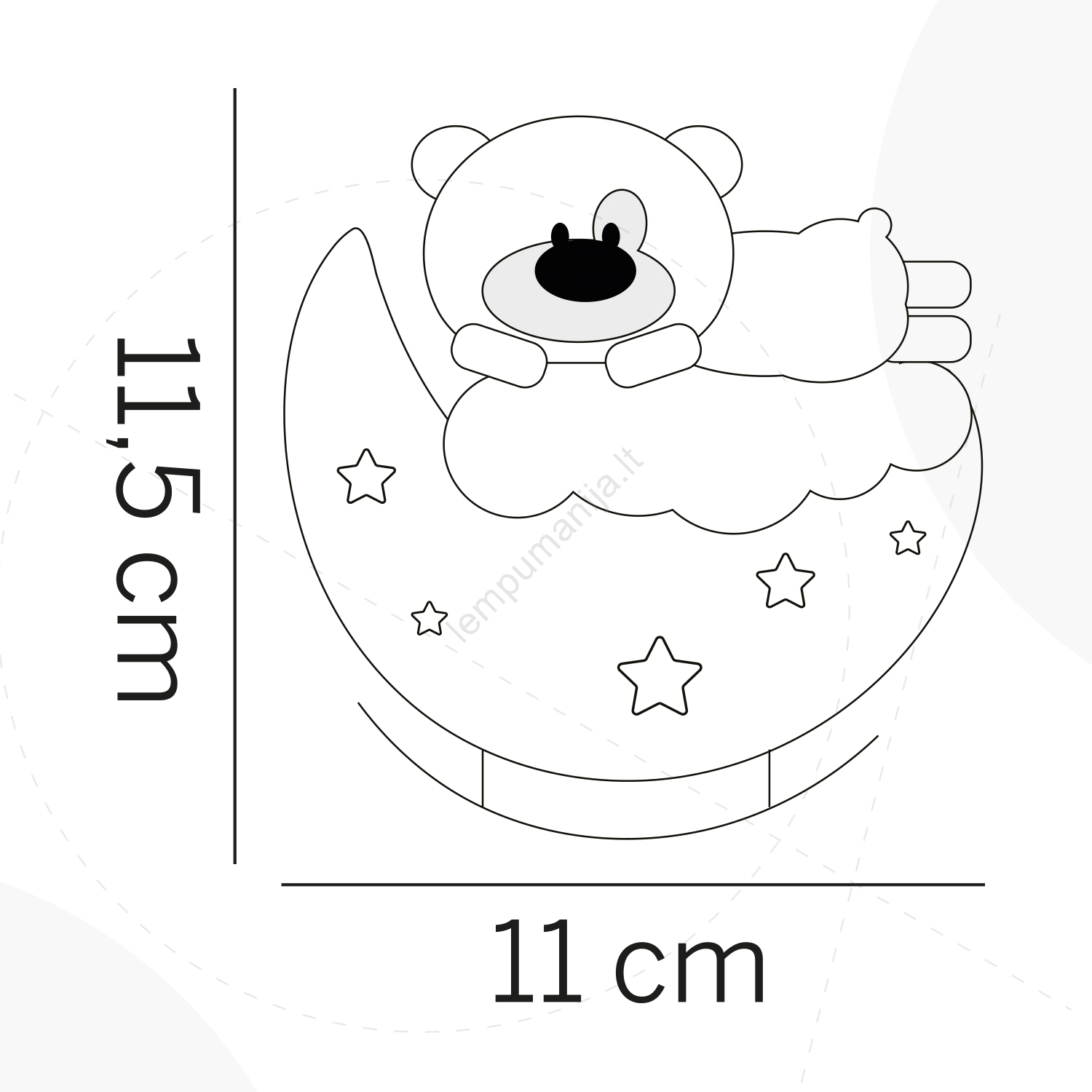 • Pagrindą sudaro švelnios mėlynos spalvos pusmėnulis su išryškintomis žvaigždutėmis, kuris prisilietus švelniai siūbuoja.