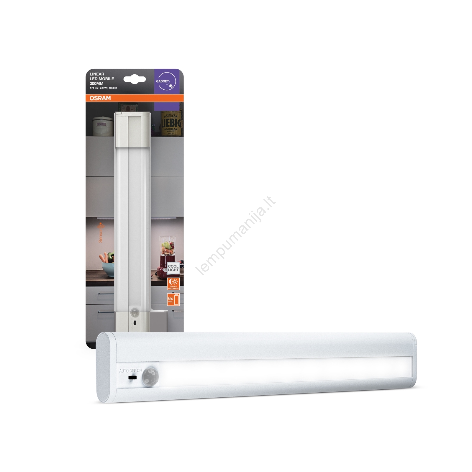Osram - LED įleidžiamas šviestuvas su judesio ir sutemų jutikliu LINEARLED LED/2,9W/9V 6xAA 4000K 31,4 cm baltas