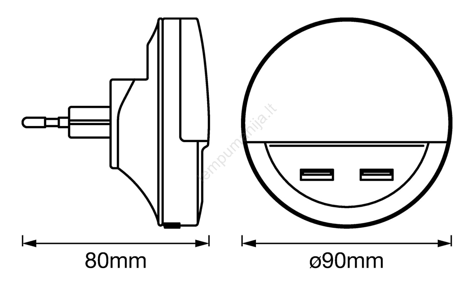 Osram - LUNETTA kištukinė LED naktinė lempa su jutikliu, 2x USB, 13 W, 230 V | Lempumanija