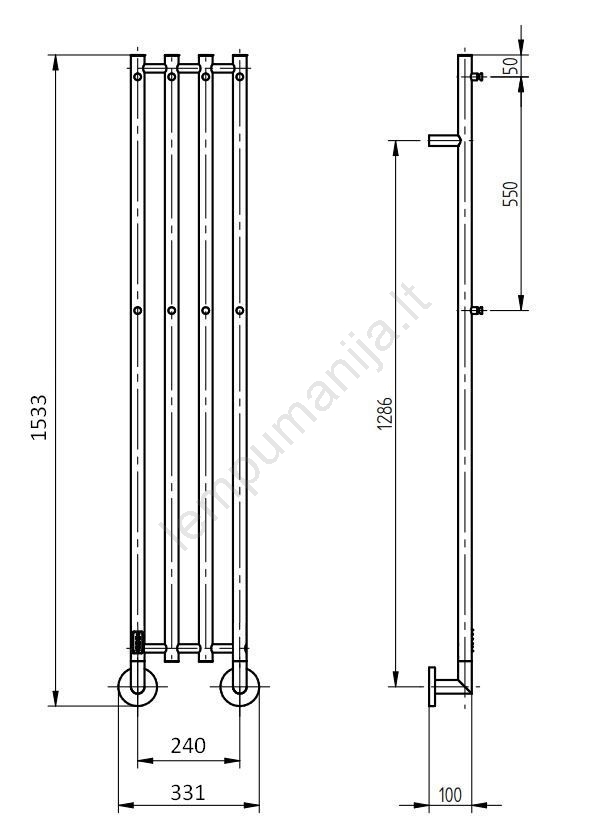 P.M.H. MO1SS-LK - Elektrinis rankšluosčių džiovintuvas MONA 93W/230V 153,3 cm IP44 nerūdijančio plie