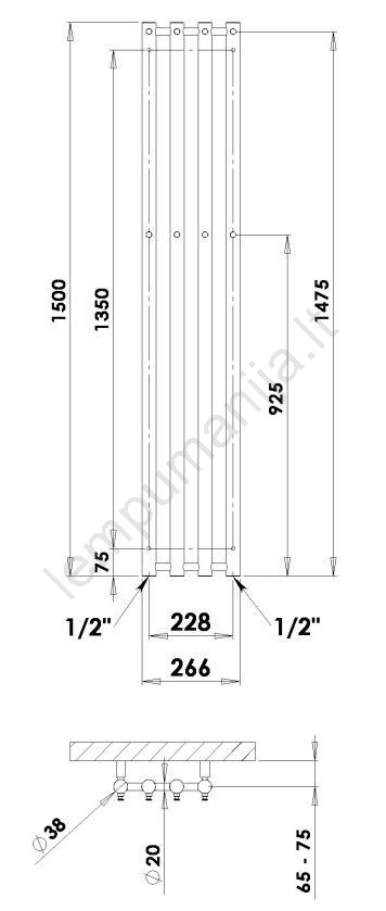 P.M.H. R2B - Vonios kambario kopėčių tipo rankšluosčių radiatorius ROSENDAL 350W 150 cm juodas | Lem