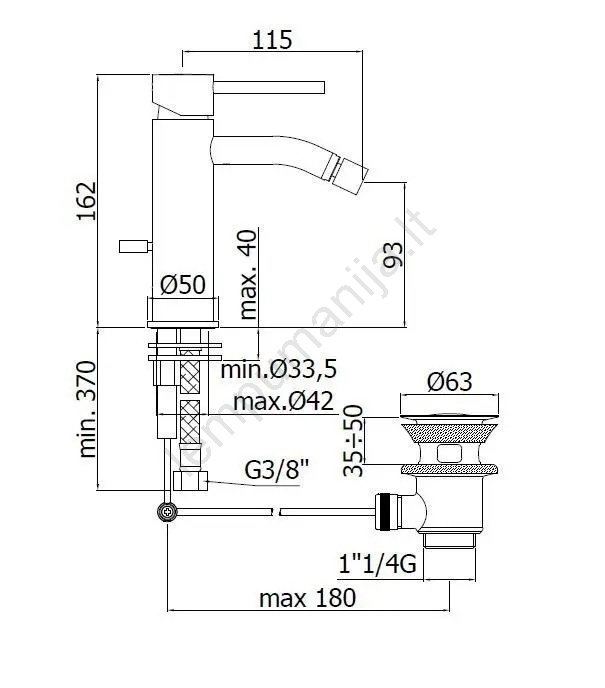 • Stalviršinis vienos svirties bidė maišytuvas modernaus, švaraus dizaino.