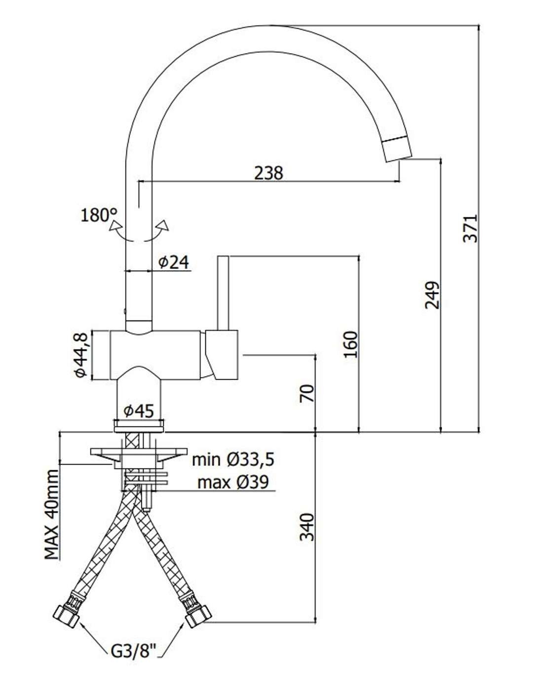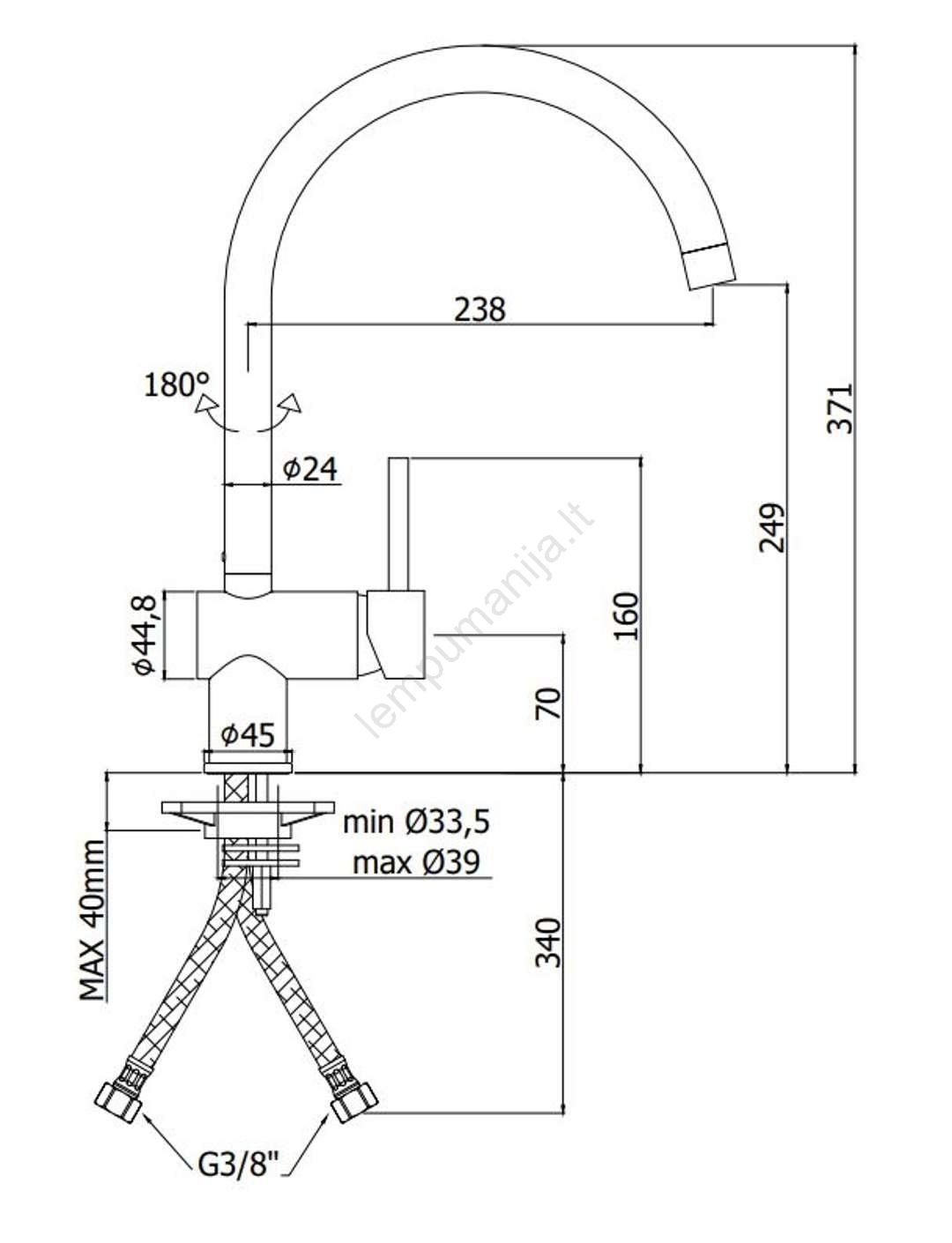 • Svirtinis, ant stalviršio montuojamas virtuvės kriauklės maišytuvas.