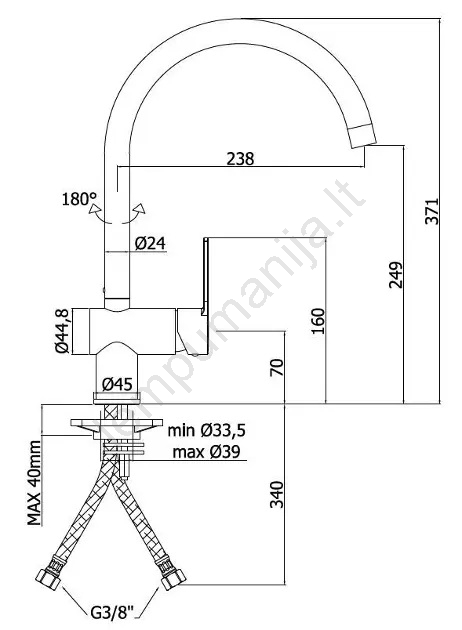 • 180° sukamasis išleidimo snapas – patogiam naudojimui prie kriauklės ir geresnei pasiekiamumui.