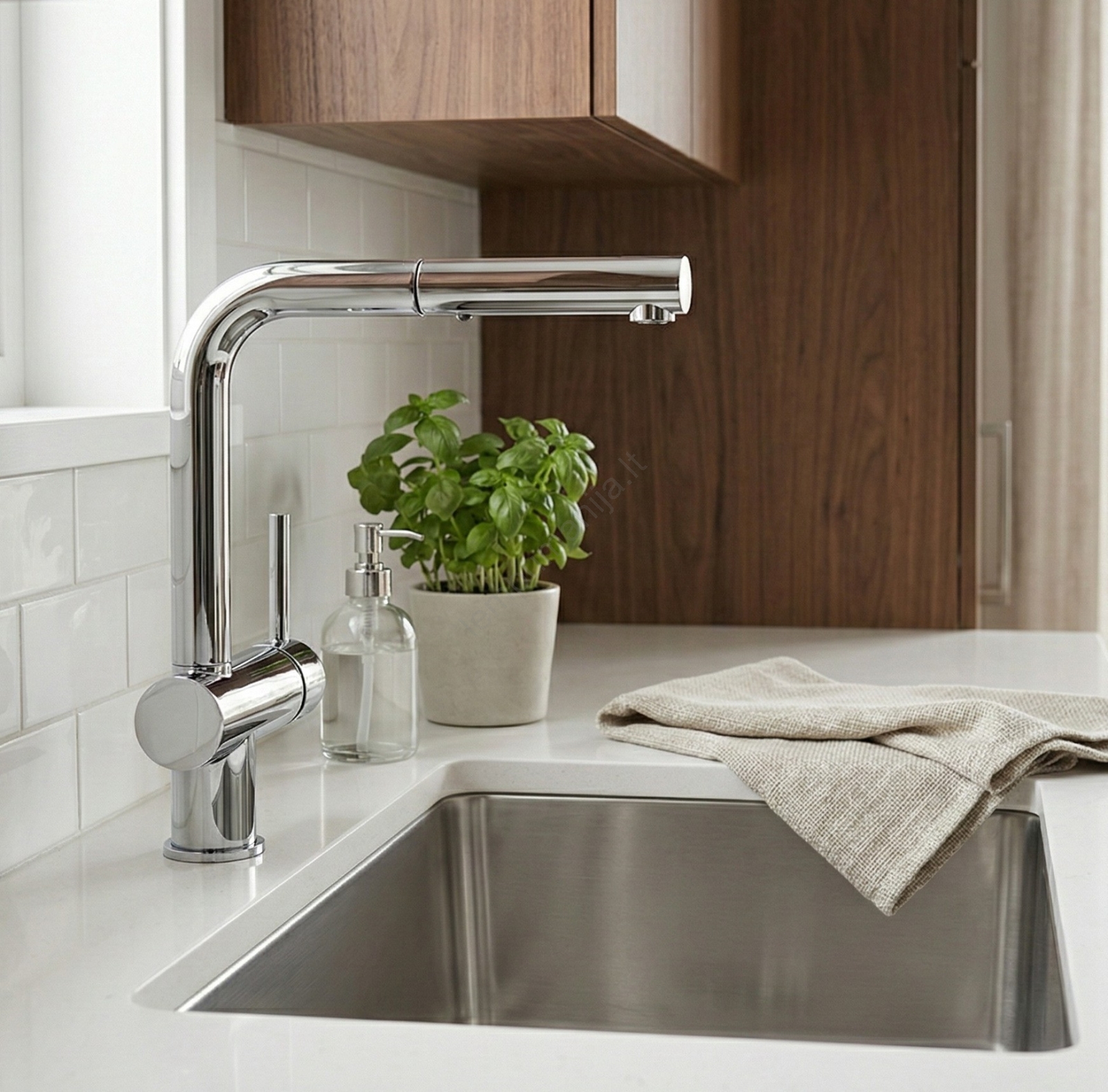 • Sukamas snapas – patogiam darbui prie kriauklės.