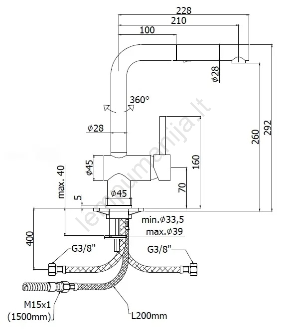 • Virtuvinis stalinis maišytuvas su patogiu svirtiniu valdymu.