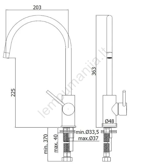 • Sukamas čiaupo snapas, palengvinantis darbą prie kriauklės.