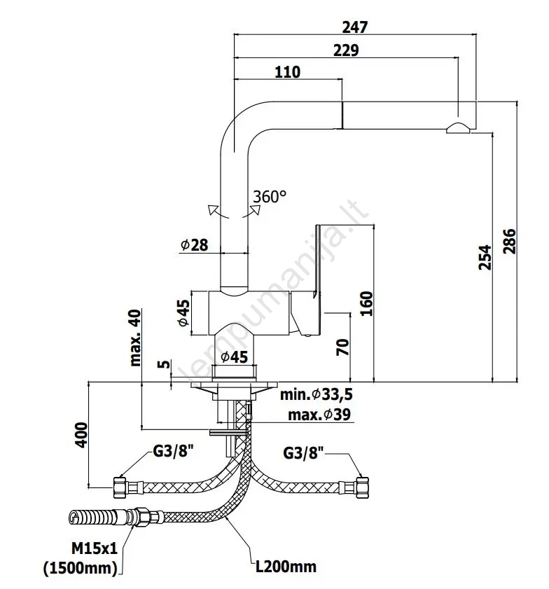 • Tinka montuoti ant kriauklės arba ant stalviršio kaip pastatomas maišytuvas.
