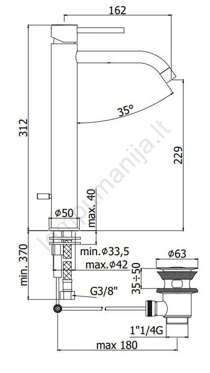 • Elegantiškas stalviršinis praustuvo maišytuvas su išleidimo vožtuvu.