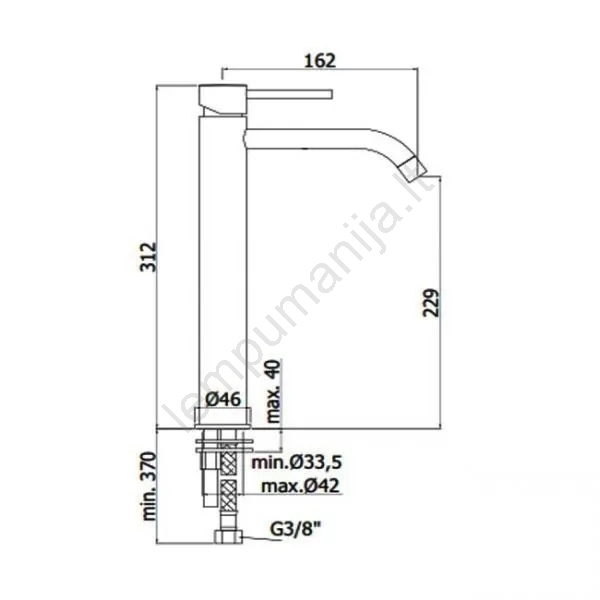• Aukštas stalviršinis praustuvo maišytuvas su svirtiniu valdymu.