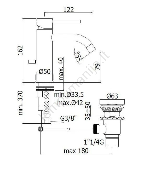 • Ant stalviršio montuojamas vienos svirties praustuvo maišytuvas su integruotu išleidimo mechanizmu.