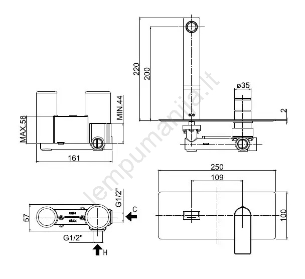 • Praustuvo svirtinis maišytuvas skirtas montuoti po tinku.