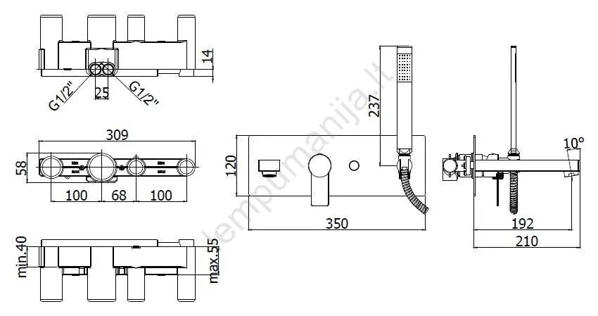 • Į komplektą įeina dušo komplektas su rankine dušo galvute ir žarna.