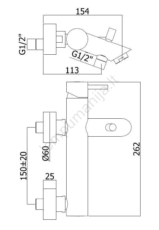 • Sieninis vonios maišytuvas su svirtimi.
