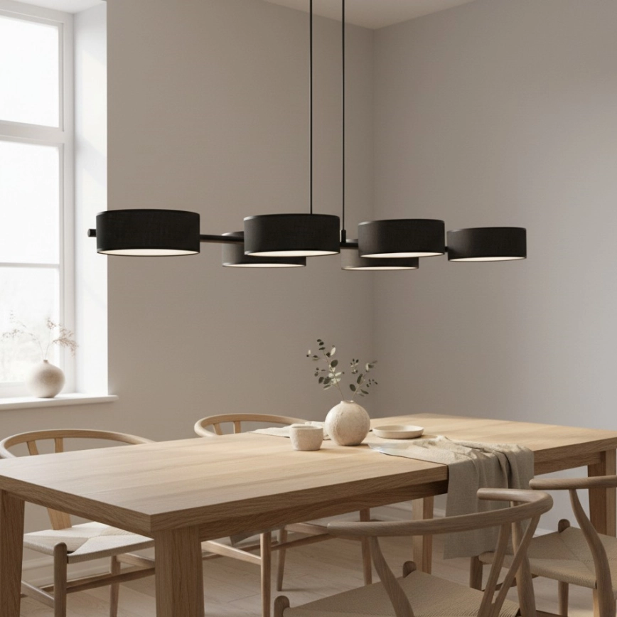 Pakabinama liustra ant laido DRUMZ 6xE14/10W/230V juoda pasižymi gražiu ir funkcionaliu dizainu.  Šviestuvui tinka lemputė su E14 dangteliu. Čia galite įsigyti kitų lempučių palankiomis kainomis. Įdomus jūsų namų priedas.