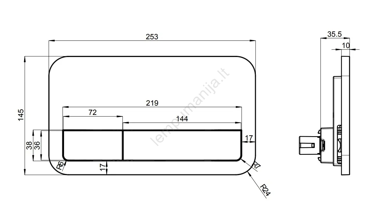 Pakabinamas unitazas SUBWAY + tualeto sėdynė SoftClose SUBWAY + nuleidimo mygtukas VICONNECT + potinkinis modulis VICONNECT + izoliacinė tarpinė VICONNECT