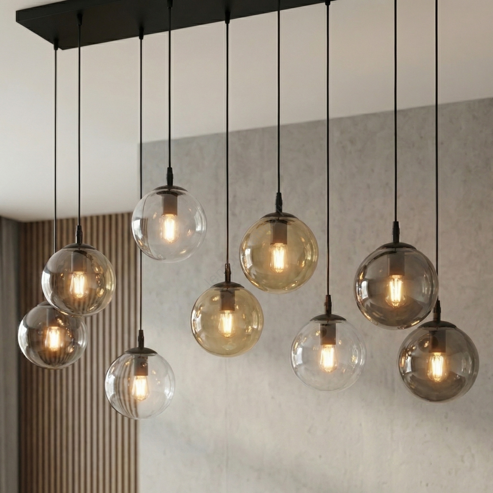 Pakabinamas sietynas COSMO 9xE14/10W/230V juoda/pilka/smėlio spalva/permatoma pasižymi gražiu ir funkcionaliu dizainu.  Šviestuvui tinka lemputė su E14 dangteliu. Čia galite įsigyti kitų lempučių palankiomis kainomis. Įdomus jūsų namų priedas.