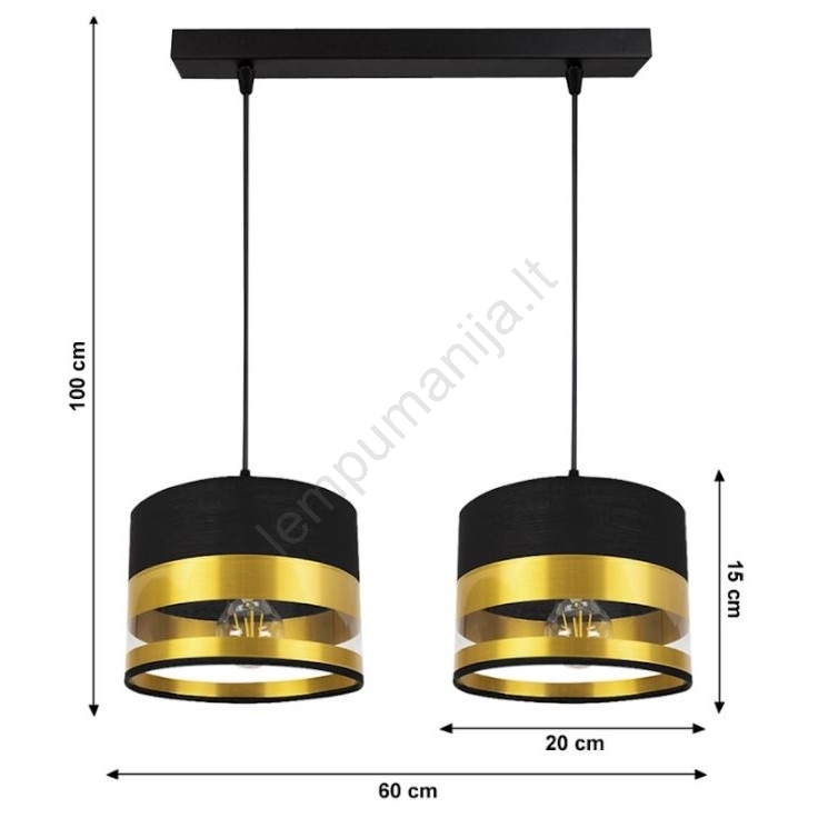 Pakabinamas sietynas MILO 2xE27/60W/230V auksas/juodas | Lempumanija