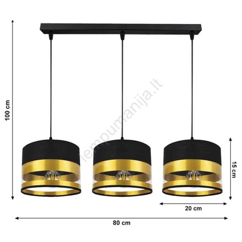 Pakabinamas sietynas MILO 3xE27/60W/230V auksas/juodas pasižymi gražiu ir funkcionaliu dizainu.  Šviestuvui tinka lemputė su E27 dangteliu. Čia galite įsigyti kitų lempučių palankiomis kainomis. Įdomus jūsų namų priedas.