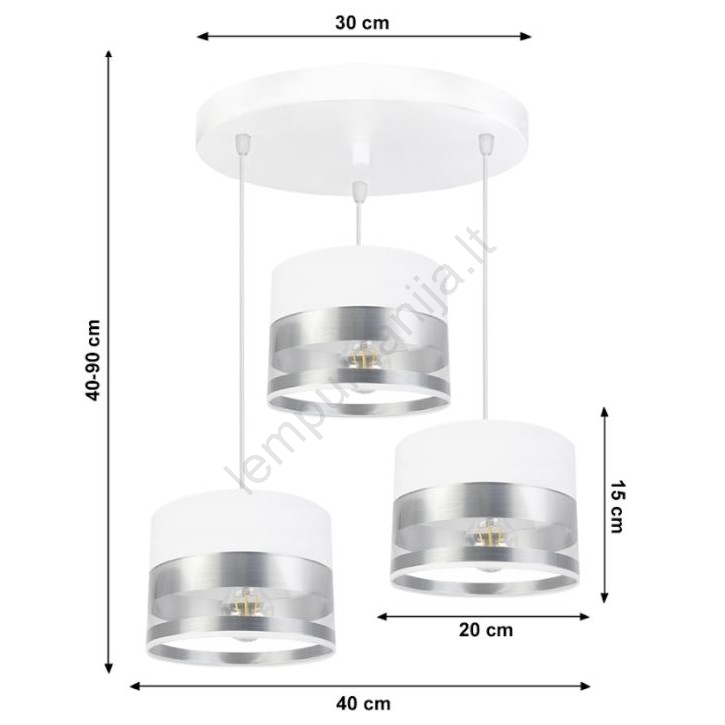 Pakabinamas sietynas MILO 3xE27/60W/230V sidabras | Lempumanija