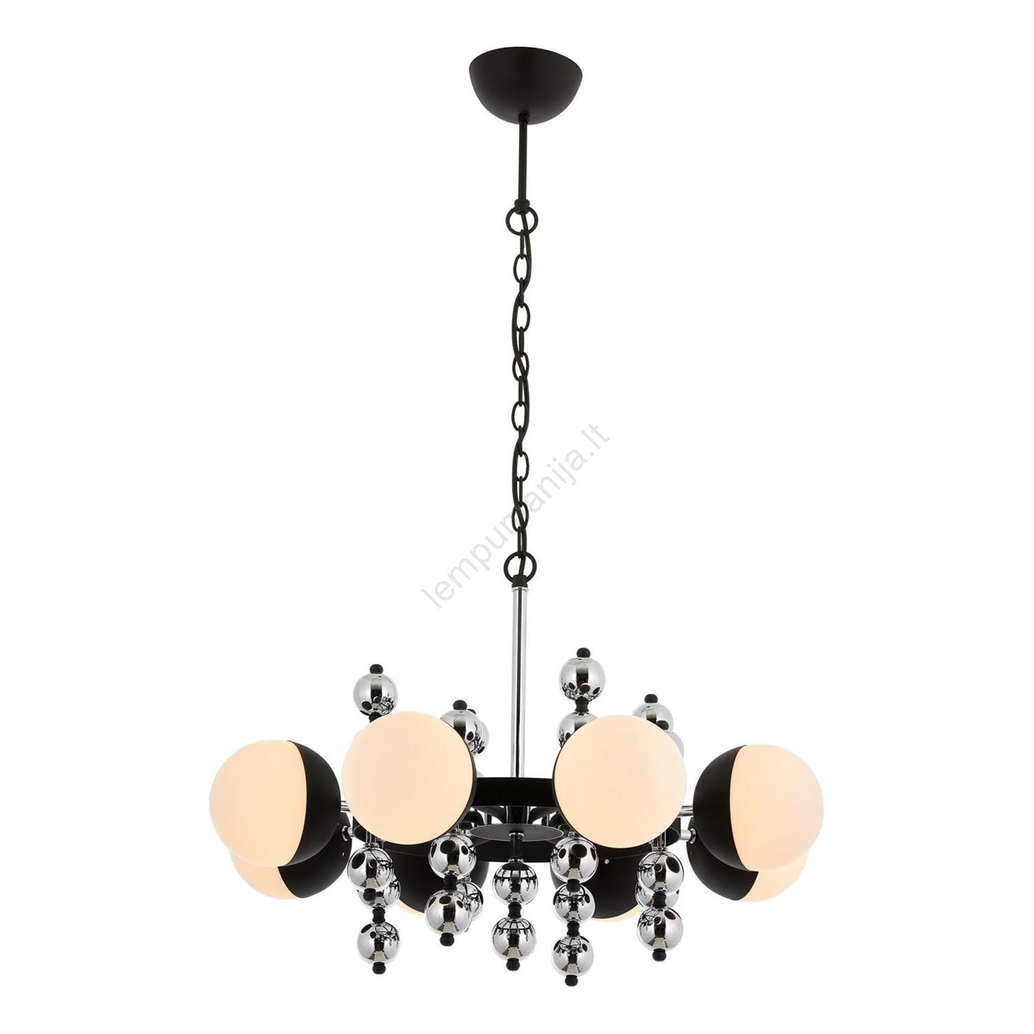 Pakabinamas šviestuvas ant grandinės DAISY 8xE27/40W/230V juodas/blizgus chromas pasižymi gražiu ir funkcionaliu dizainu.  Šviestuvui tinka lemputė su E27 dangteliu. Čia galite įsigyti kitų lempučių palankiomis kainomis. Įdomus jūsų namų priedas.