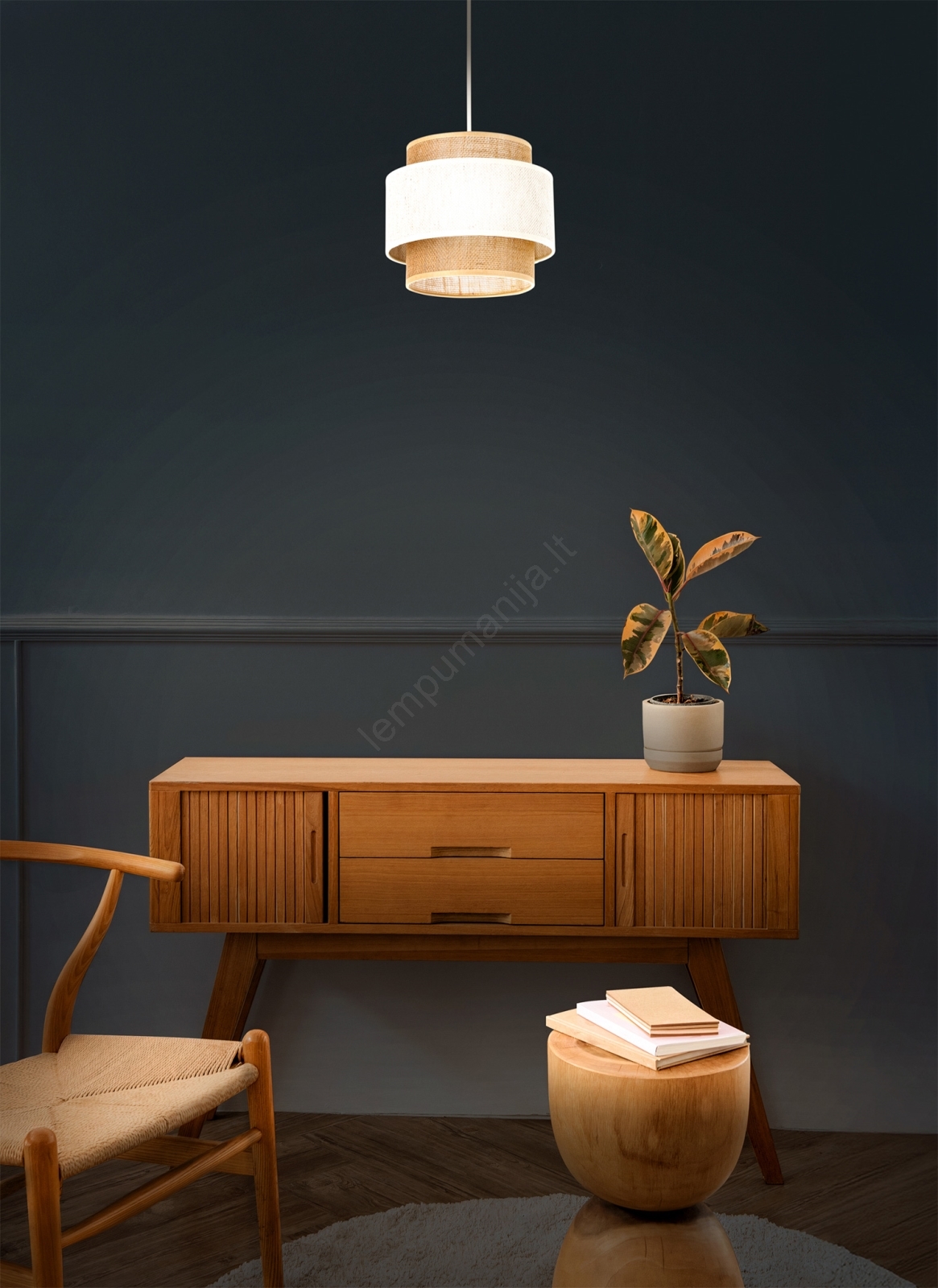 Pakabinamas šviestuvas ant laido BOHO 1xE27/60W/230V skersm. 20 cm kreminė/džiutas pasižymi gražiu ir funkcionaliu dizainu.  Šviestuvui tinka lemputė su E27 dangteliu. Čia galite įsigyti kitų lempučių palankiomis kainomis. Įdomus jūsų namų priedas.