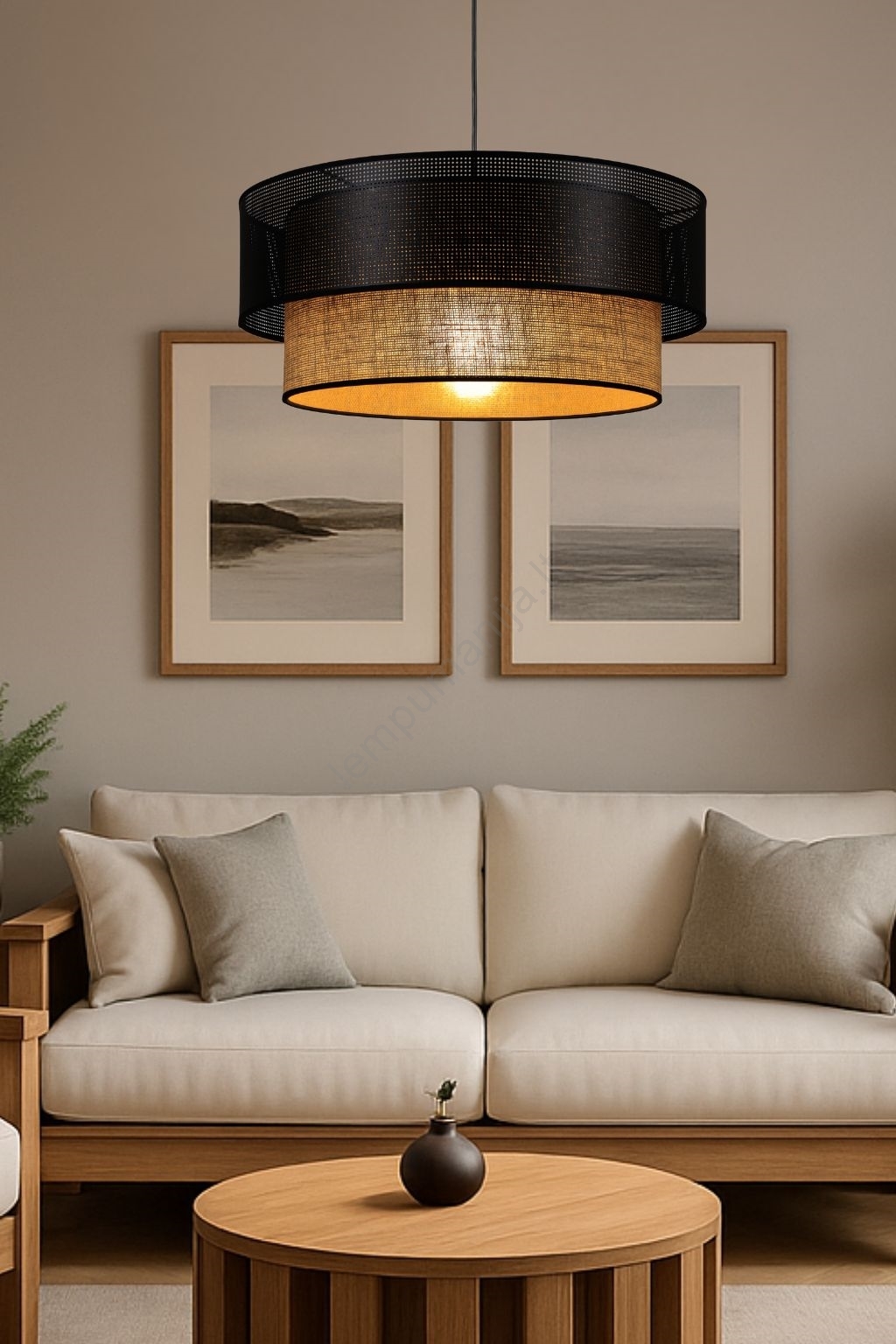 • Pakabinamas šviestuvas ant laido BORHO 1xE27/60W/230V Ø 50 cm juodas/džiutas