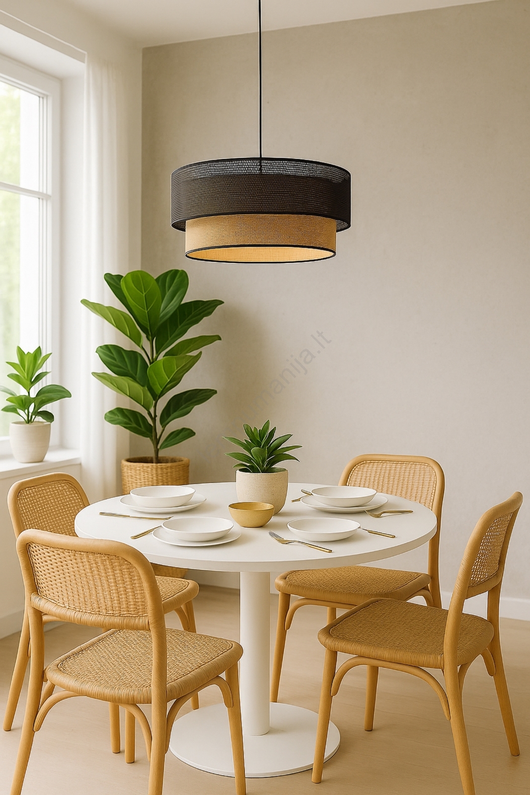 • Pakabinamas šviestuvas ant laido BORHO 1xE27/60W/230V Ø 50 cm balta/džutas