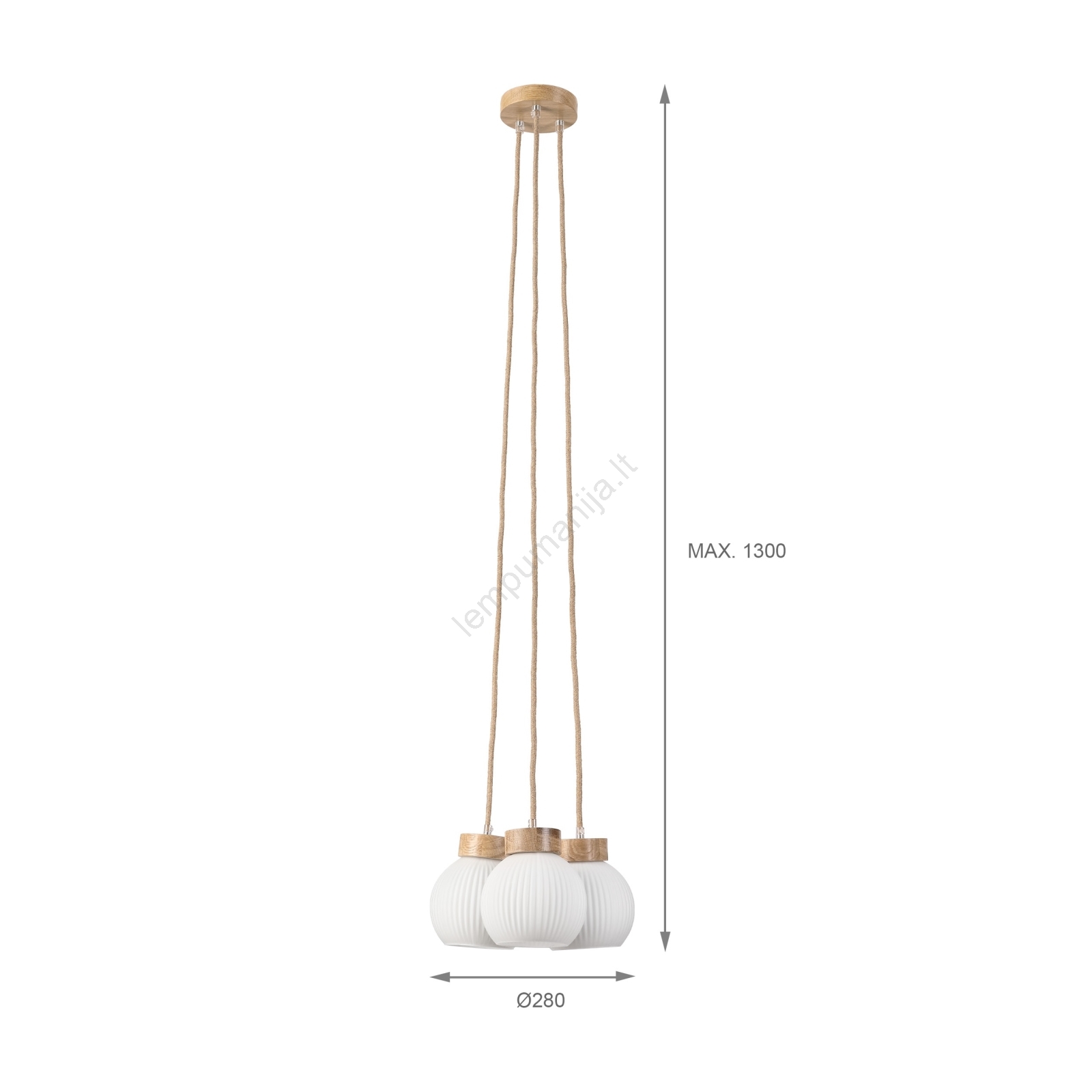 Pakabinamas šviestuvas ant laido LOOMIS 3xE27/15W/230V 130 cm smėlinis/ąžuolas pasižymi gražiu ir funkcionaliu dizainu.  Šviestuvui tinka lemputė su E27 dangteliu. Čia galite įsigyti kitų lempučių palankiomis kainomis. Įdomus jūsų namų priedas.