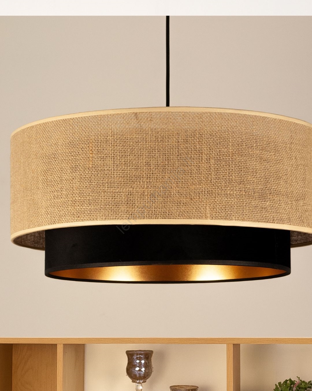 • Pakabinamas šviestuvas ant laido SARTA 1xE27/60W/230V, skersmuo 45 cm, ruda/juta